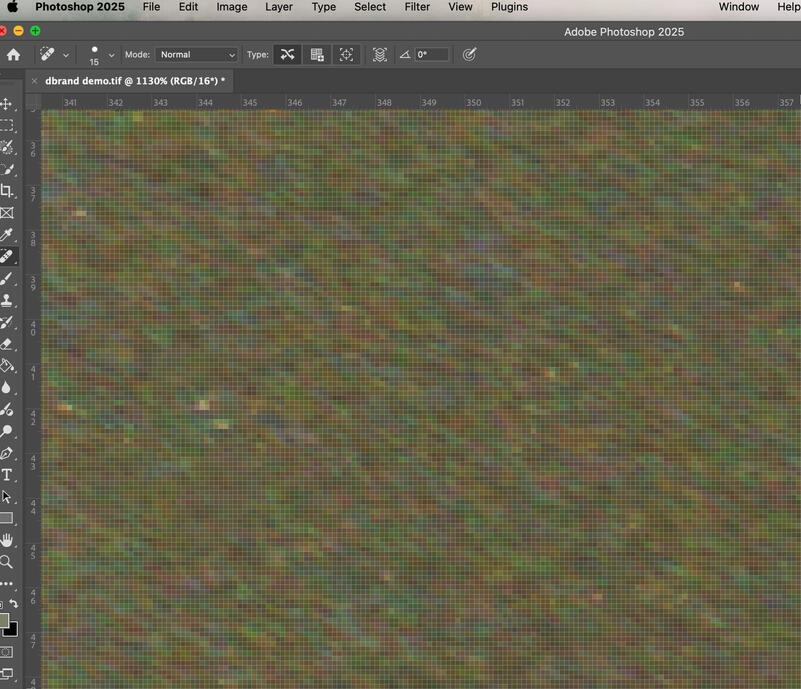 I imported the high-resolution scan into Adobe Photoshop and used a non-destructive workflow to preserve the integrity of the original file. The primary cleanup tool was the Spot Healing Brush, chosen for its precision in removing small particles without introducing artificial textures.Before beginning, I set a personal challenge: to fully clean the image and track the time spent on restoration. The entire process took roughly 1 hour and 30 minutes, during which I methodically zoomed in and worked section by section. Carefully balancing efficiency with accuracy.